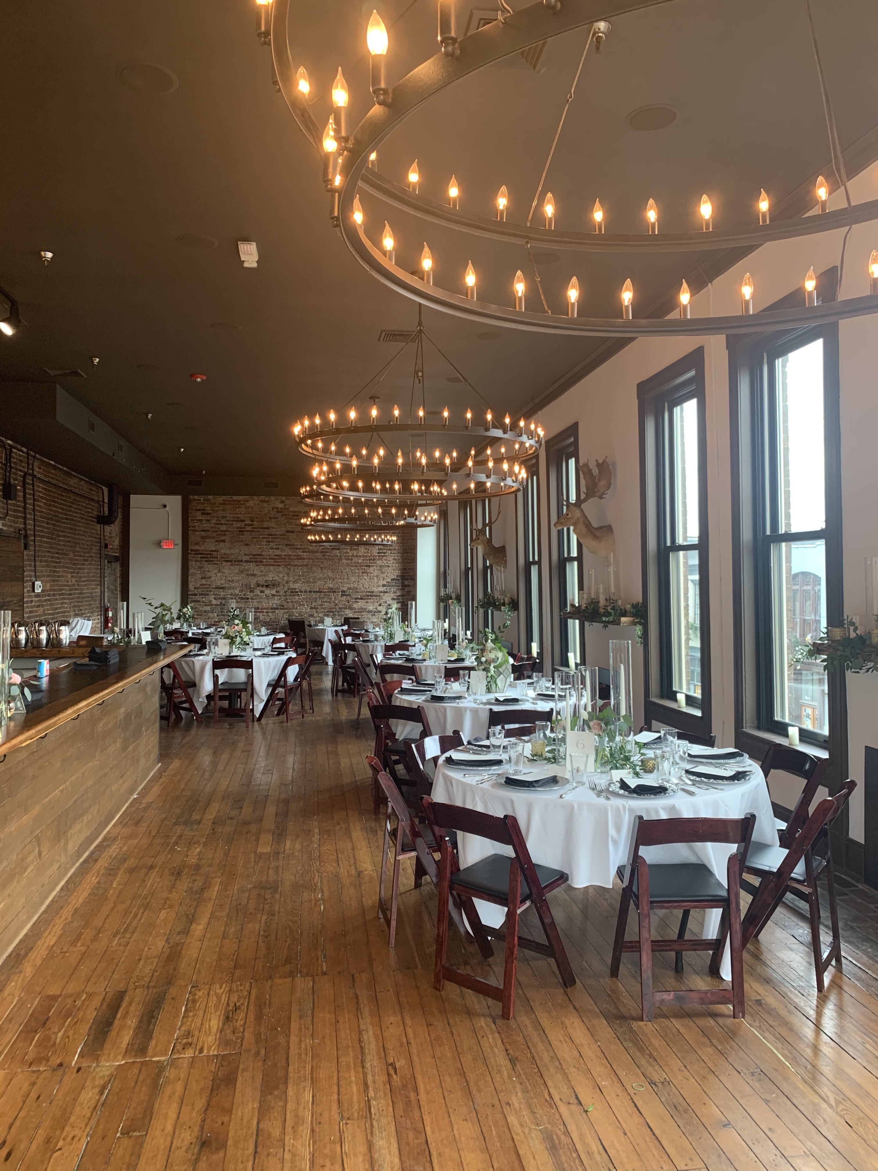 I was commissioned to slightly help my coworker set up for her wedding a few weeks ago, and I thought it looked so beautiful when I left I had to snap a photo. This was before the candles were lit, and I can’t image how beautiful it looked then.